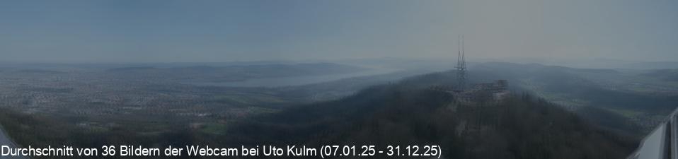Im Jahr 2025 war ich 36 mal oben auf dem Uetliberg, in der Regel auf einer Wanderung vom und zurück zum Zürcher Friesenberg. Die an der Kanzel des Fernsehturms installierte Webcam verfügt ebenfalls über ein Archiv, allerdings nur mit einem Bild pro Tag um 12 Uhr. Somit ergibt sich ein Durchschnittsbild von der Mittagszeit an jenen Tagen, an denen ich am Uetliberg unterwegs war. Offenbar gab es 2025 eine leichte Verschiebung der Kameraausrichtung, sichbar zum Beispiel an der Abbildung des Uetliberg-Aussichtsturms.